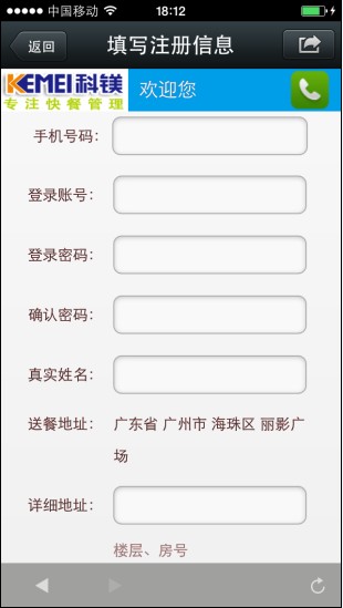 客戶注冊成功后,可以進(jìn)入會員中心,修改用戶的聯(lián)系方式,送餐地址等