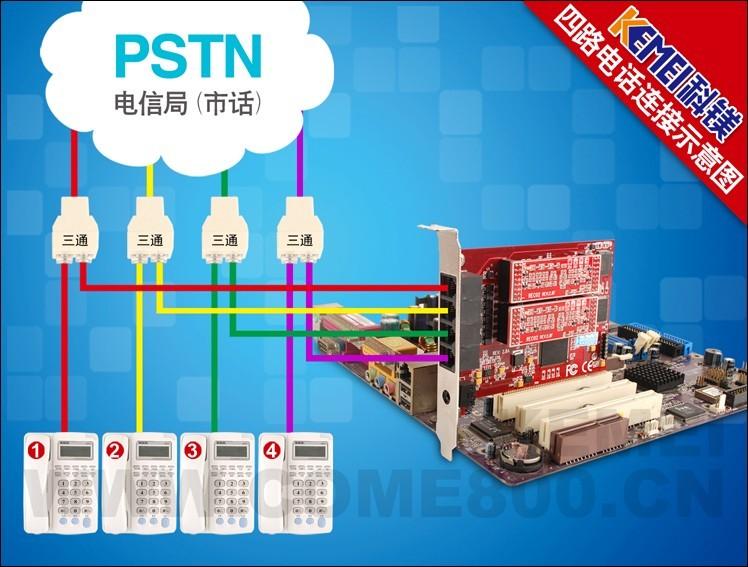 COME800-R04電話(huà)錄音系統(tǒng),將通話(huà)錄音和來(lái)電去電號(hào)碼保存在電腦的硬盤(pán)上,結(jié)合相應(yīng)的軟件,實(shí)現(xiàn)各種錄音查詢(xún)功能,錄音卡與電腦的連接示意圖如下: