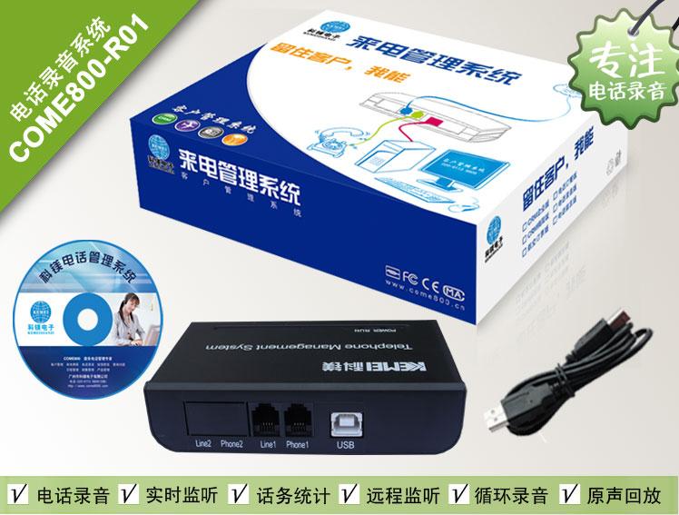 COME800-R01電話錄音系統(tǒng),硬件通過電腦的USB接口連接,將通話錄音和來電去電號碼保存在電腦的硬盤上,結(jié)合相應(yīng)的軟件,實現(xiàn)各種錄音查詢功能,錄音盒與電腦的連接示意圖如下: