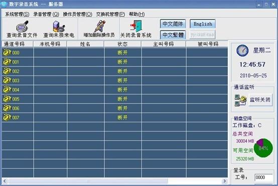 1.在錄音系統(tǒng)本機(jī)上,實(shí)時(shí)監(jiān)聽任一路電話的通話,單卡8路,最多128路電話同時(shí)錄音;