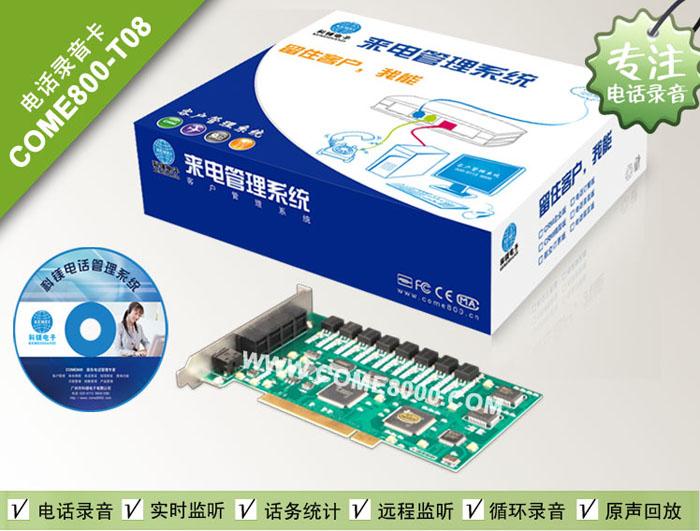 型號(hào):COME800-T08說明:COME800-T08 電話錄音系統(tǒng),提供單卡8路,PCI接口,單機(jī)最大8塊卡,能實(shí)現(xiàn)64路同時(shí)錄音,將通話錄音和來電去電號(hào)碼保存在電腦的硬盤上,結(jié)合相應(yīng)的軟件,實(shí)現(xiàn)各種錄音查詢功能。本終端硬件設(shè)備符合相關(guān)的國(guó)家電氣安全測(cè)試標(biāo)準(zhǔn),終端的整體特性指標(biāo)符合國(guó)家的信息產(chǎn)業(yè)部的入網(wǎng)標(biāo)準(zhǔn)。